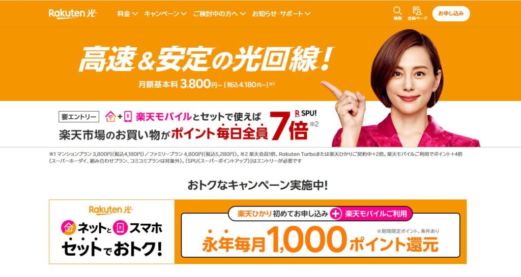 楽天ひかりは、各種キャンペーンでの「楽天ポイント還元」が魅力です!