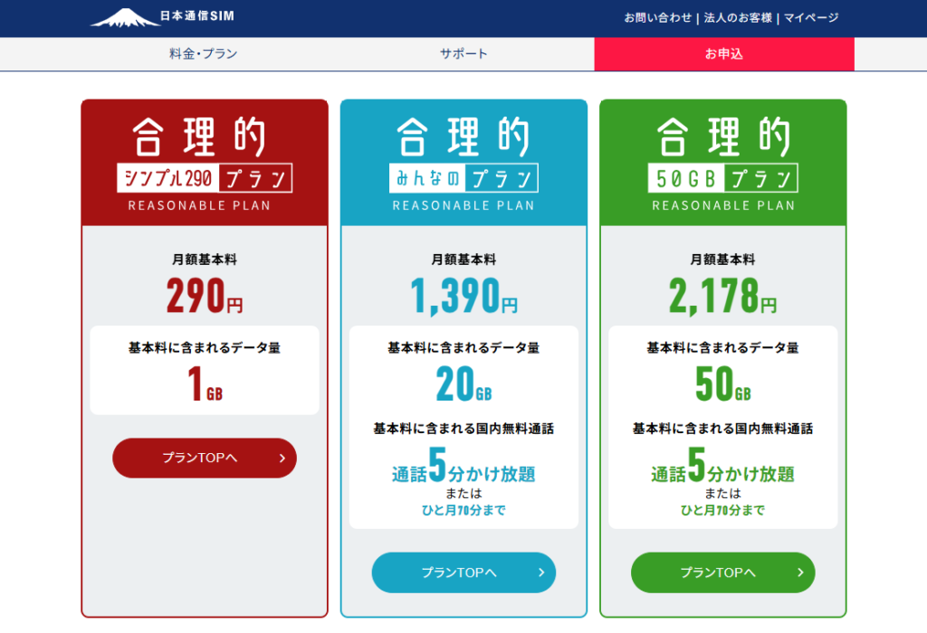 合理的シンプル290 | 合理的みんなのプラン | 合理的50GBプラン | |