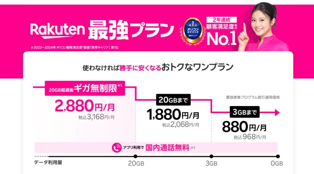 楽天モバイルも、料金プランは1つだけなんだねー!