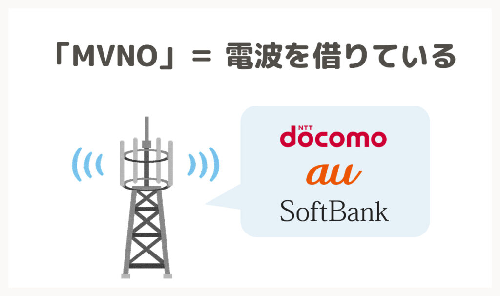 MVNOとは、ドコモやソフトバンクなどの大手キャリアから「電波を借りている通信会社」です。