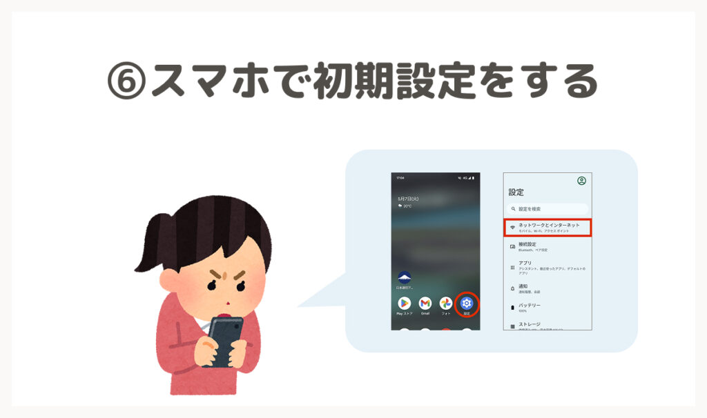 Androidでは「APN設定」、iPhoneでは「プロファイル設定」という手続きが必要になります。