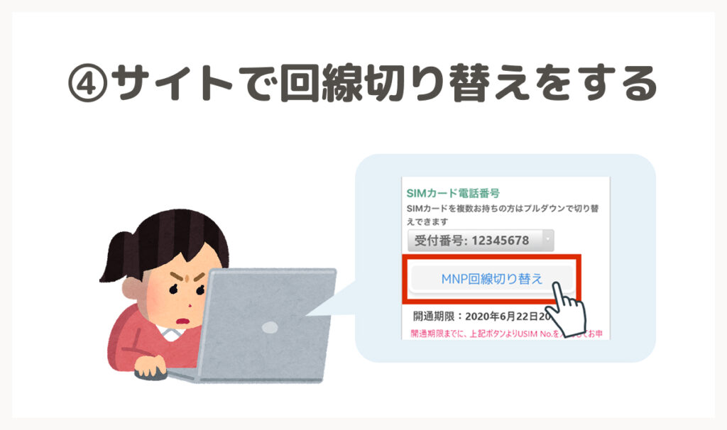 STEP.4 日本通信SIMのマイページで「MNP回線切り替え」をする